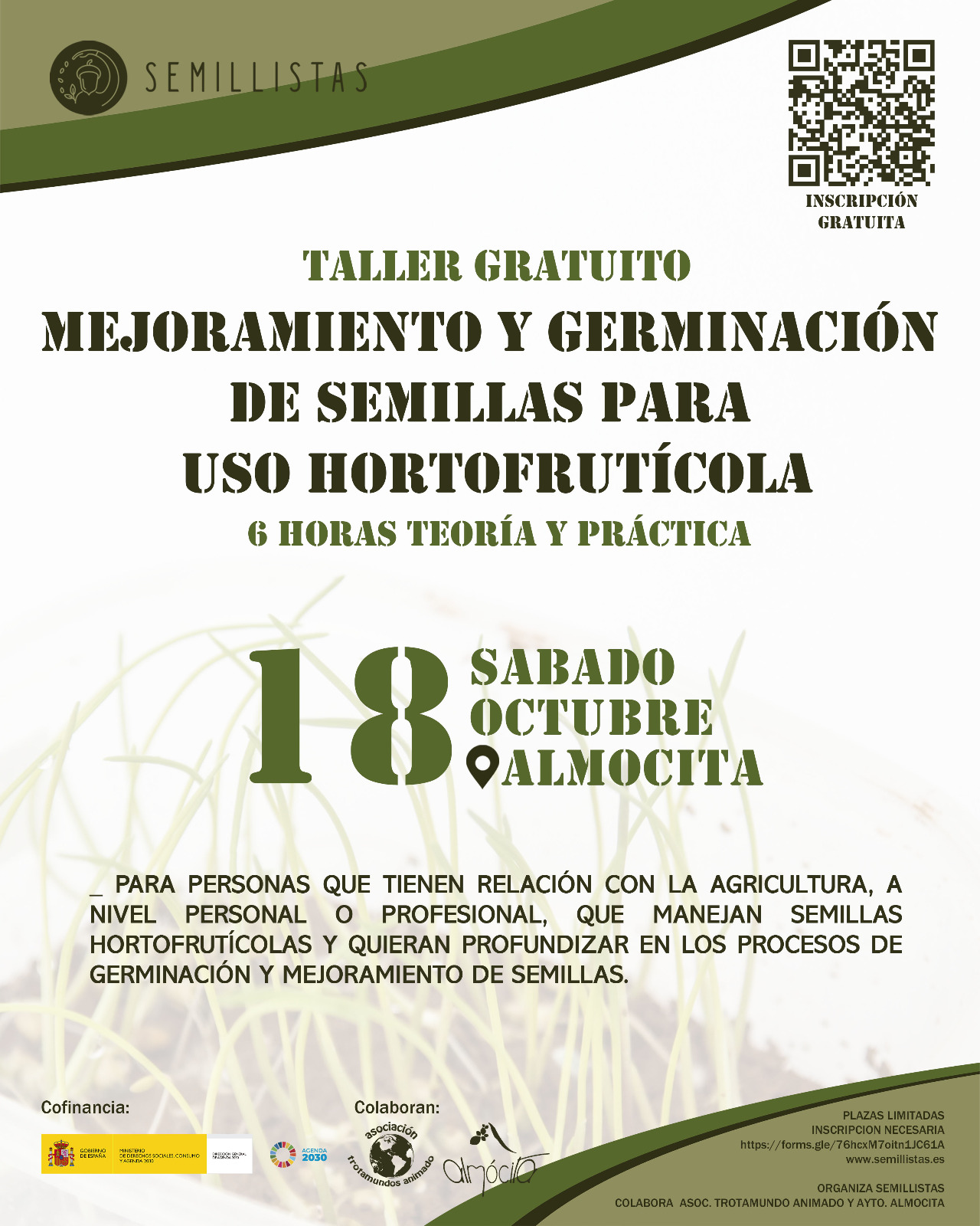 Taller Gratuito Mejoramiento y Germinación de Semillas para Uso Hortofrutícola. 18 octubre 2025 Almocita Almócita, Almería, España Gratuito