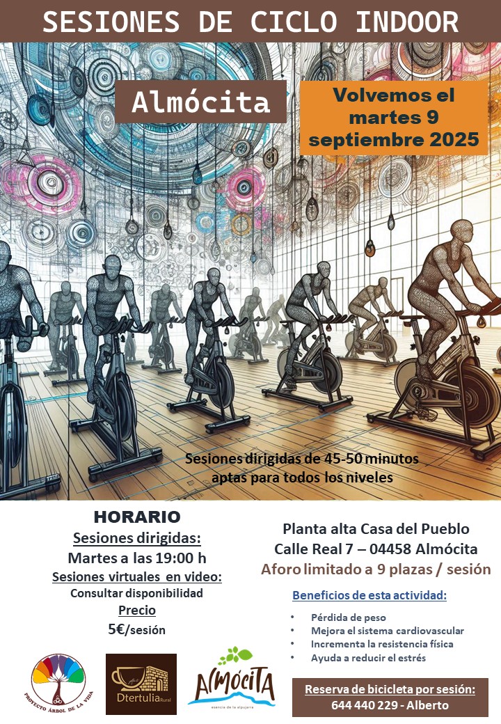 Sesiones de Ciclo Indoor. 9 septiembre 2025 // 7:00 pm - 8:00 pm Almocita Almócita, Almería, España 5€